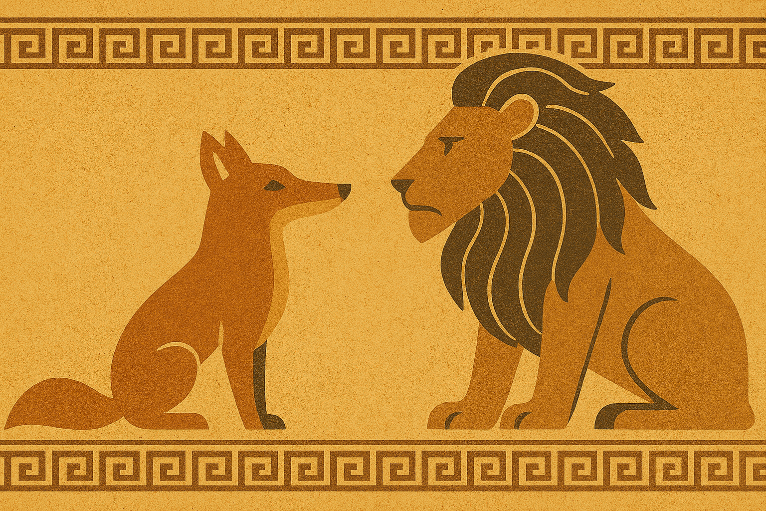 ライオンを見たことがない狐が、これにばったり出会った。初めて目にした時は死にそうなくらい驚いたが、次に出くわした時には、怖かったが初回ほどではなかった。三度目に見た時は、近寄って話しかけることが出来た。