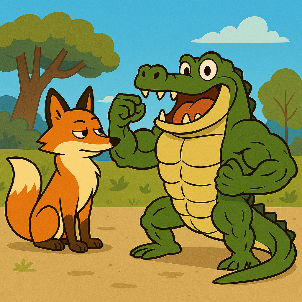 狐と鰐が家柄を競い合った。鰐が先祖の栄光をあれこれ言い、しまいには体育場監督官の家柄だというと、狐は言った。