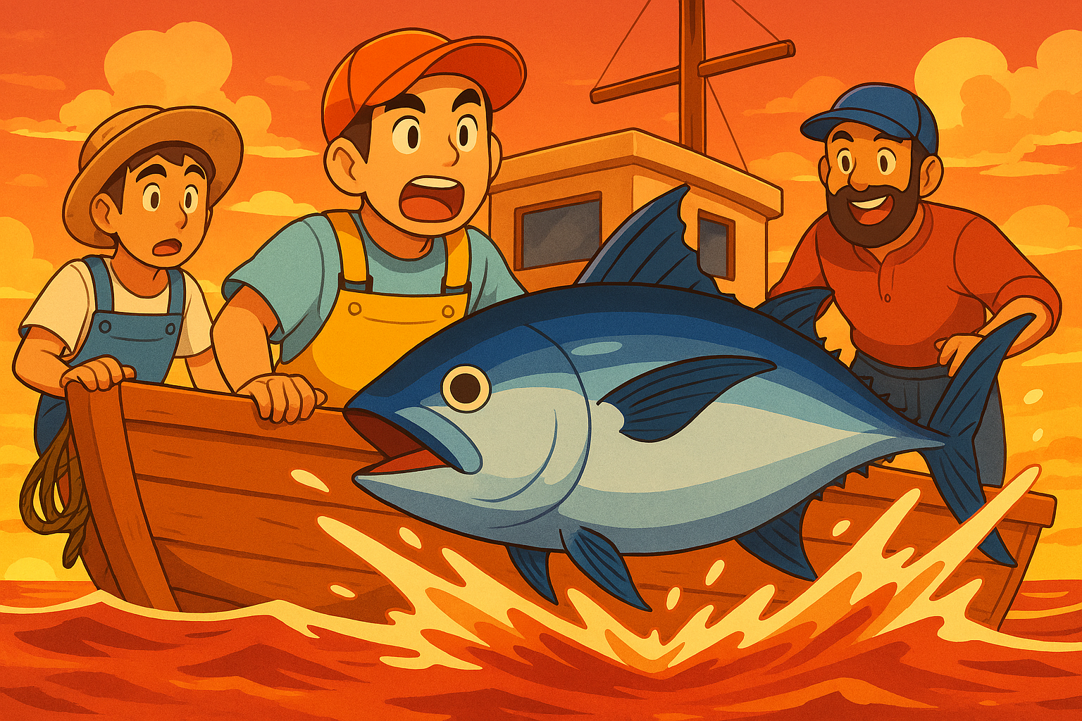 漁師たちは長時間の苦労の末、何も得られなかった。しかし“帰ろうとしたその瞬間”に、思いもよらない大きな鮪が飛び込んでくる。